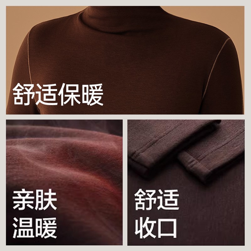 馨帮帮Bra 纯色半高领修身打底衫女秋冬磨毛保暖内搭外穿长袖上衣