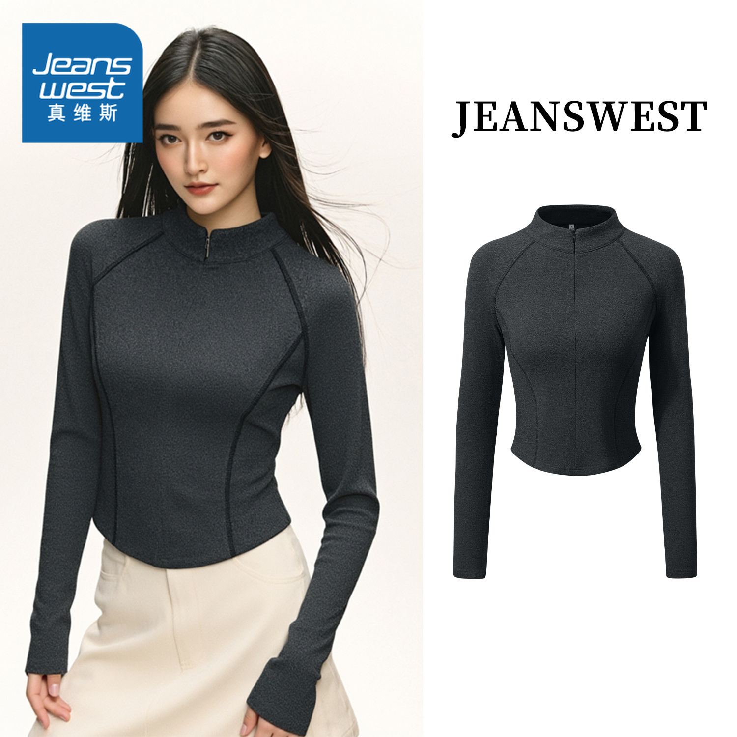 半拉链中高领修身打底衫女秋冬设计感长袖上衣显瘦半开襟保暖内搭