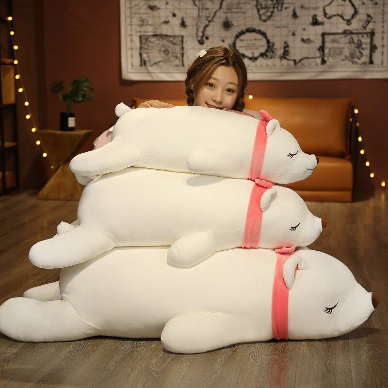 可爱北极熊毛绒玩具趴趴抱抱熊公仔大布娃娃玩偶长条睡觉抱枕拆洗