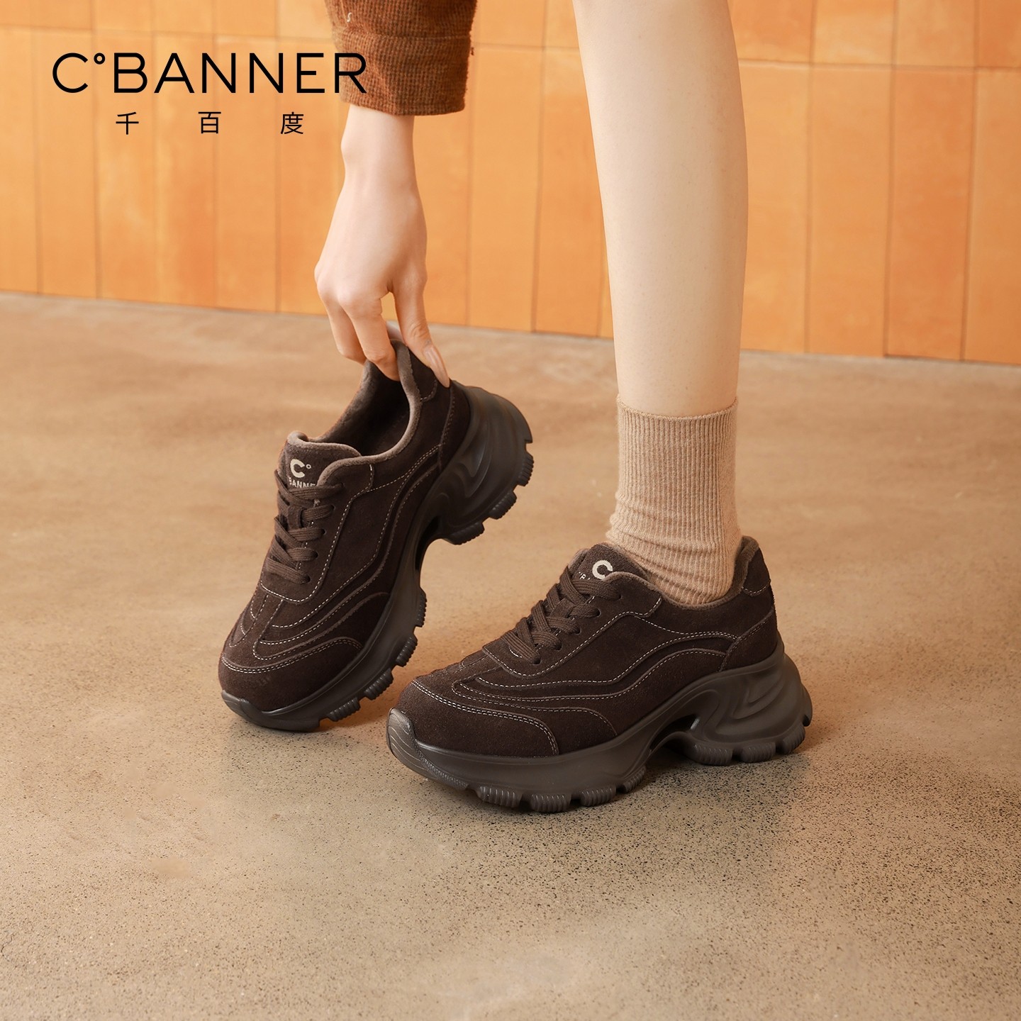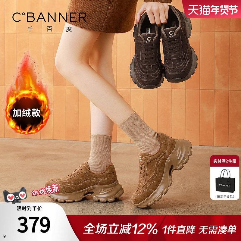 千百度厚底老爹鞋女加绒松糕系带新款百搭时尚运动鞋增高休闲女鞋