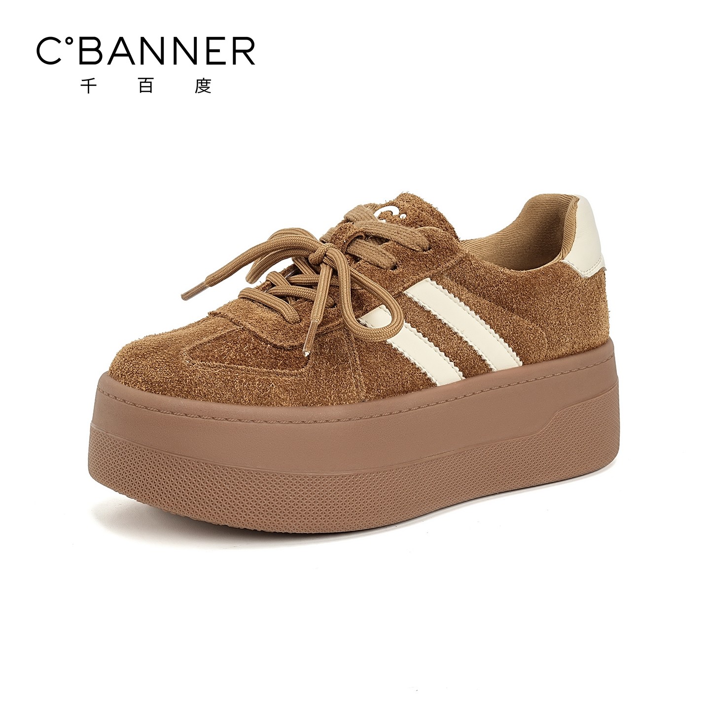 千百度厚底德训鞋女系带松糕新款百搭加厚板鞋女增高运动休闲女鞋