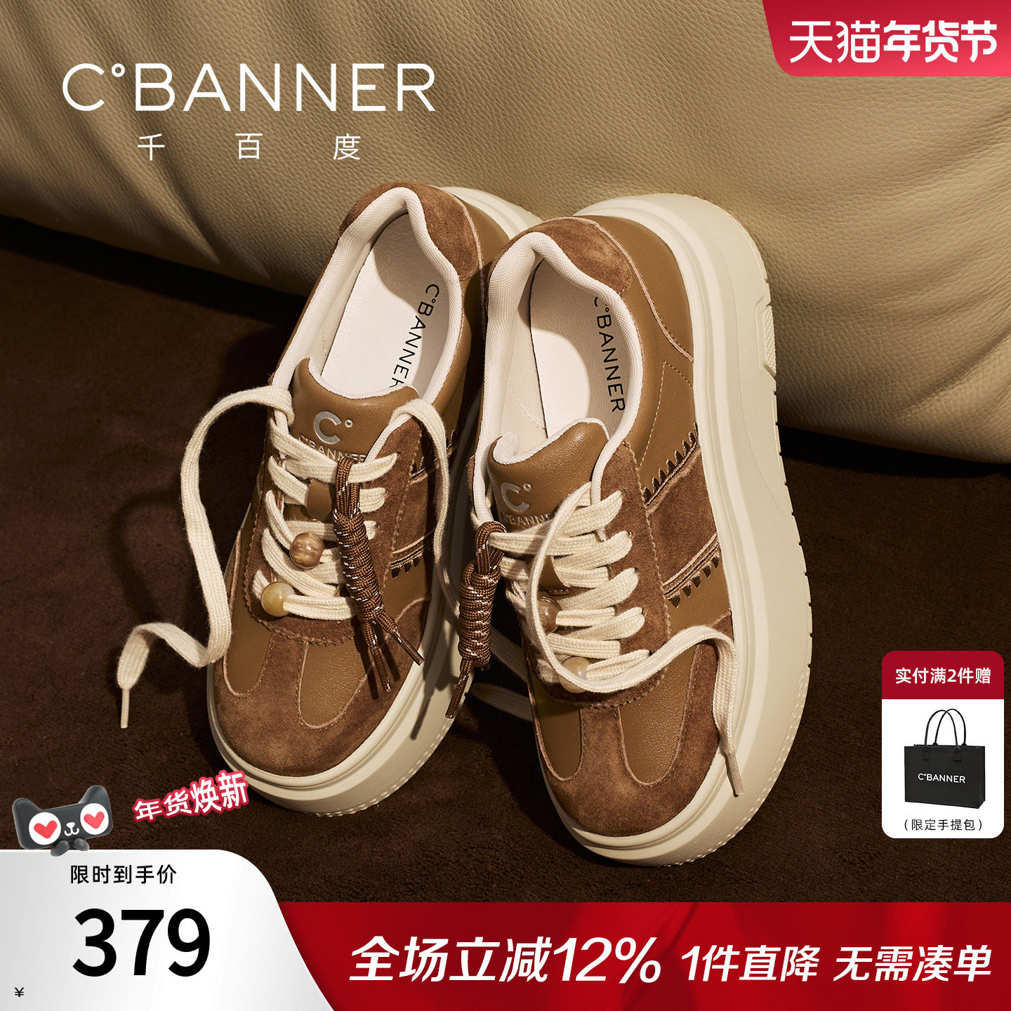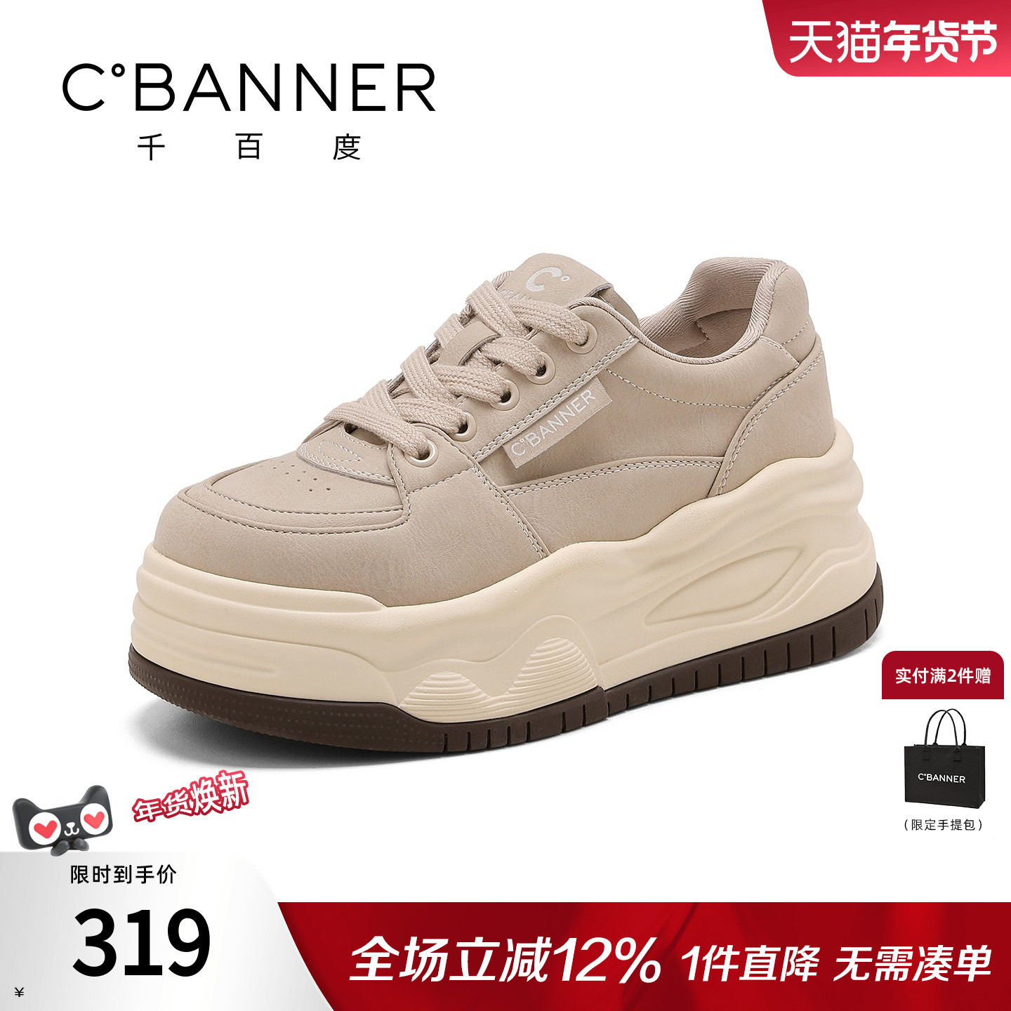 千百度厚底板鞋女松糕系带新款百搭休闲运动女鞋舒适增高小白鞋女