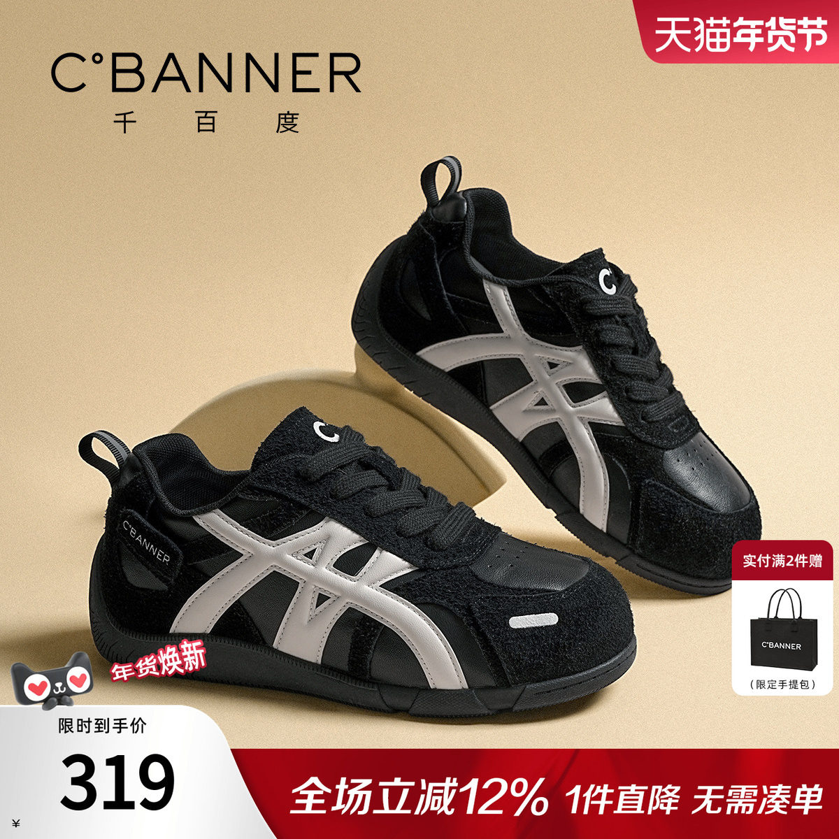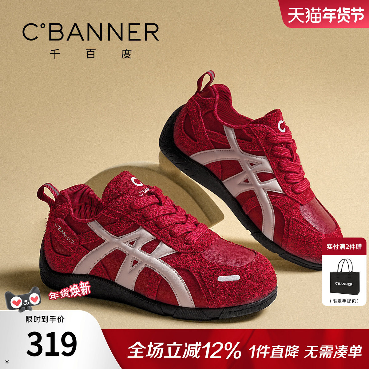 千百度红色德训鞋女系带松糕女鞋复古小众时尚百搭休闲运动鞋子女