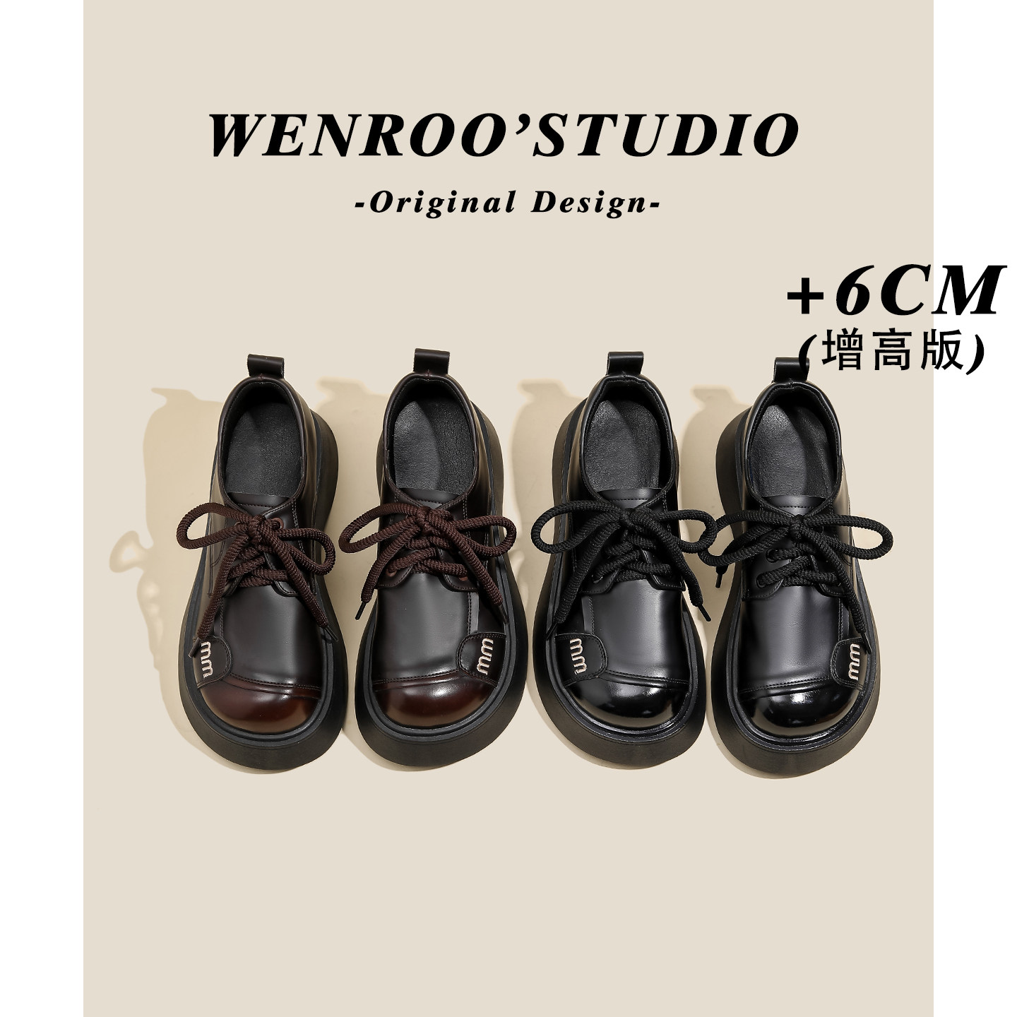 松糕厚底小皮鞋女2025年秋季新款复古百搭英伦风增高圆头系带单鞋