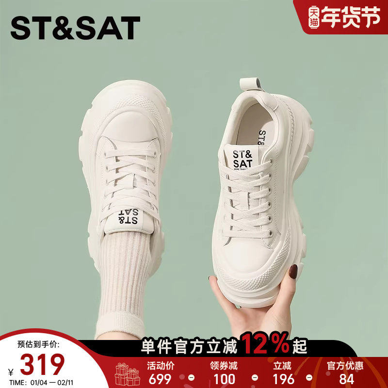 星期六真皮厚底休闲板鞋女鞋2025新款秋季舒适系带松糕鞋小白鞋子