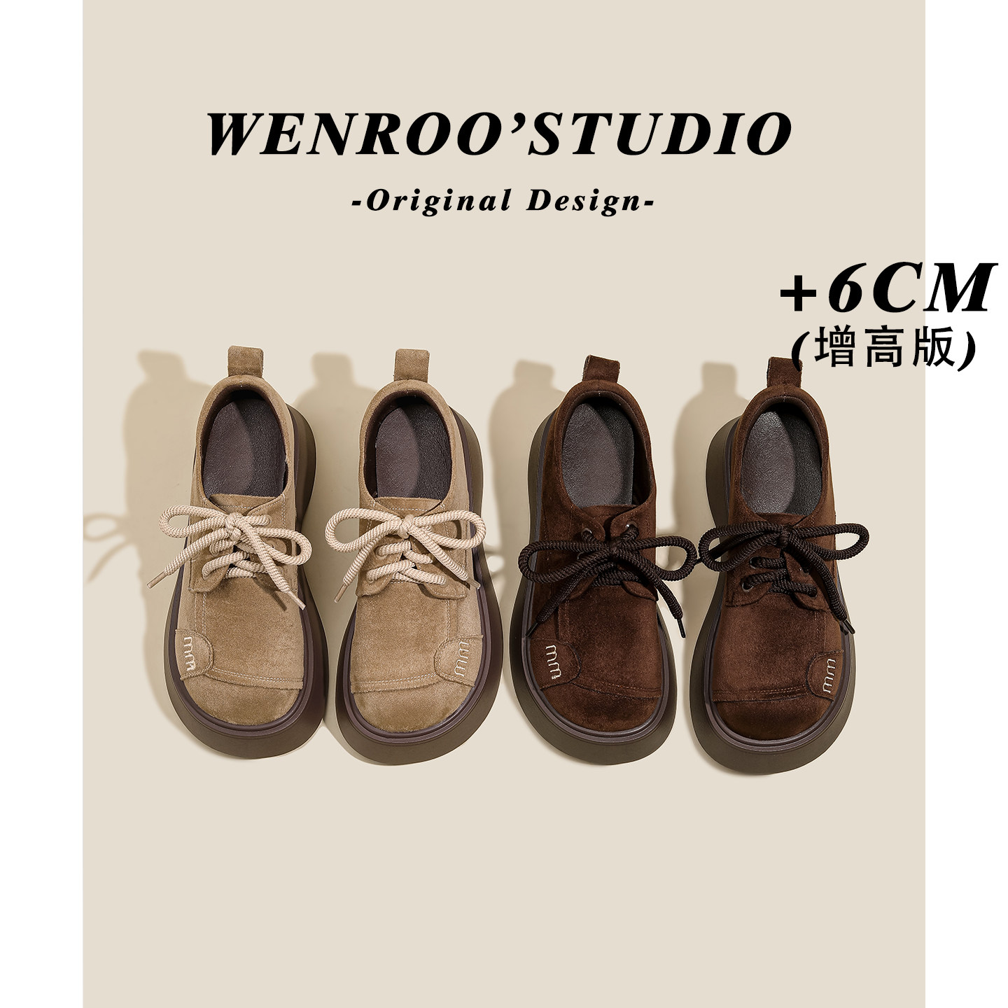 真皮~骄屿厚底小皮鞋2025春夏新款增高大头松糕鞋学院风系带单鞋