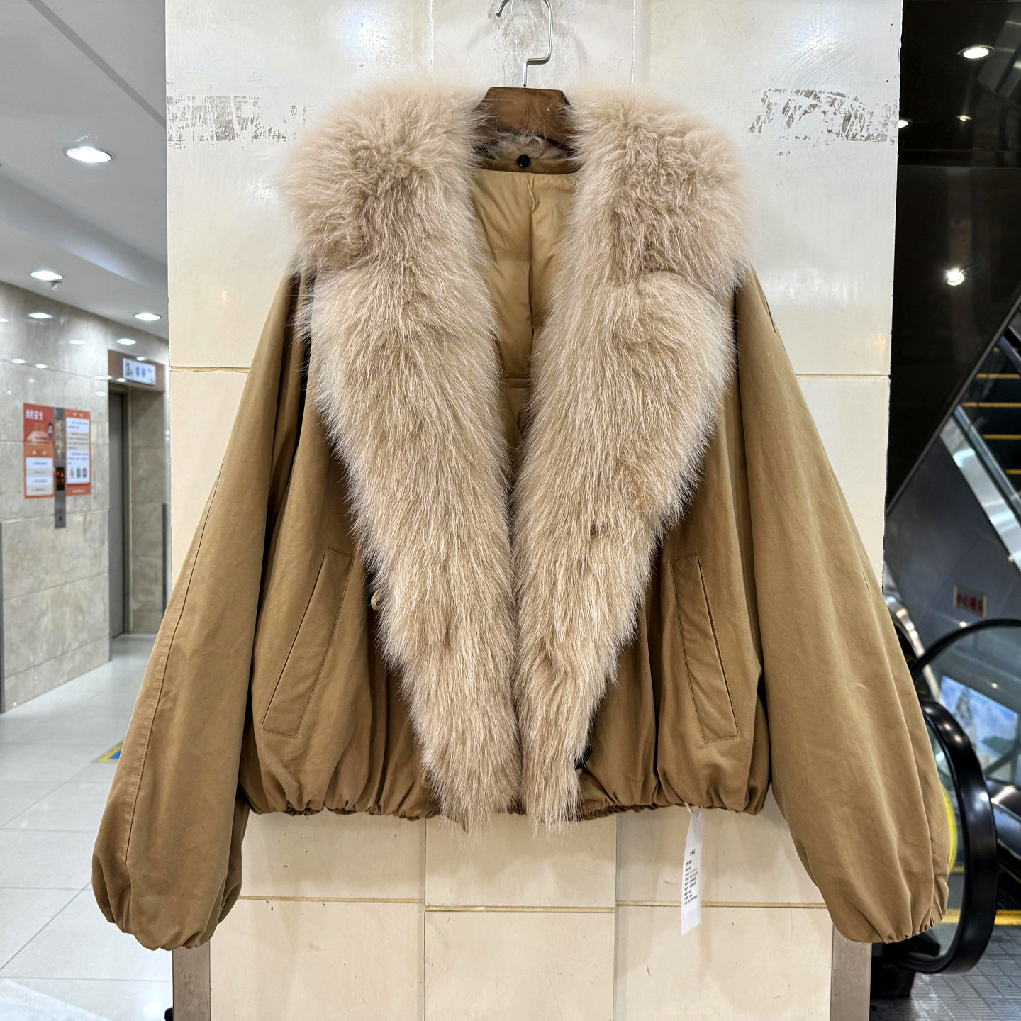 2025新款超大狐狸毛领派克服皮草鹅绒服女短款加厚保暖外套冬季