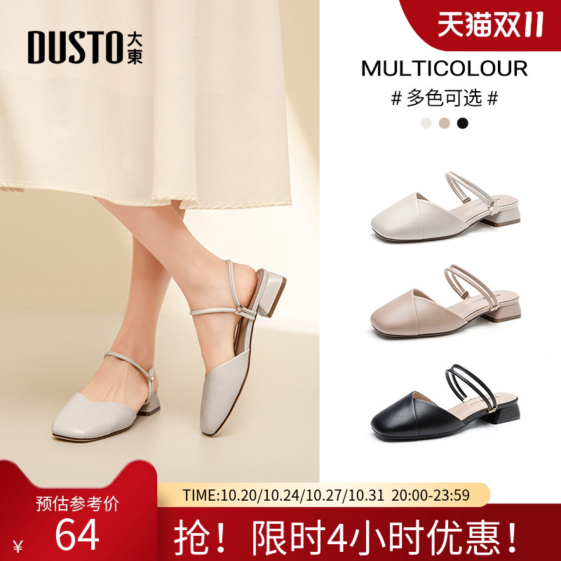 大东女鞋凉鞋女夏季新款休闲方头套脚中跟穆勒拖鞋粗跟小皮鞋0036