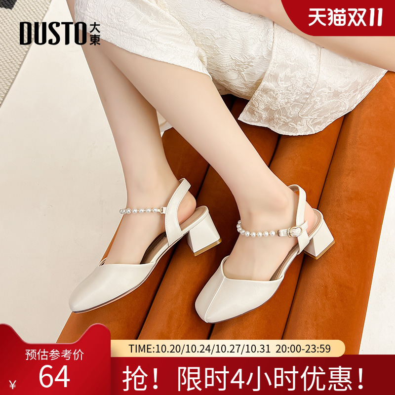 大东后空凉鞋女鞋2025夏季新款粗跟中跟套脚优雅包头舒适X0081