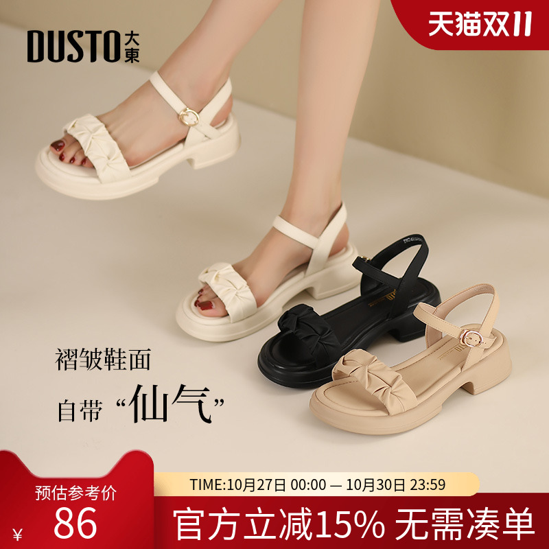 大东绑带凉鞋女鞋2025夏季新款时尚休闲粗跟中跟一字扣厚底鞋1255