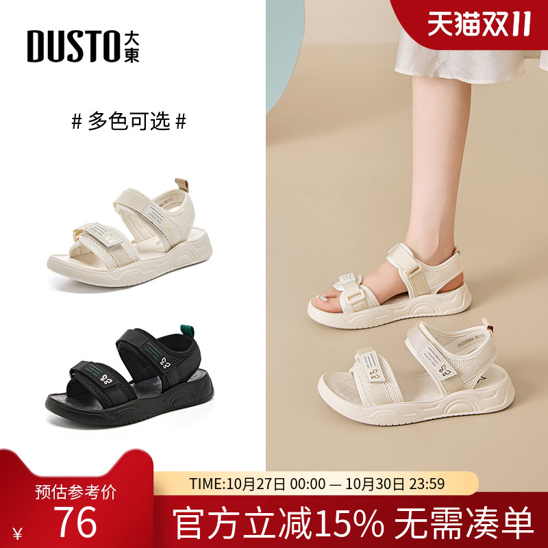 大东运动凉鞋女鞋2025夏季新款休闲风中跟平底魔术贴露趾鞋X5027