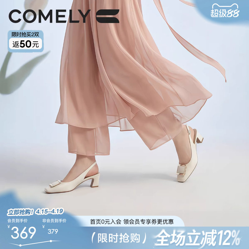 康莉方头粗跟后空凉鞋女2026年春夏新款中跟漆皮气质通勤包头凉鞋