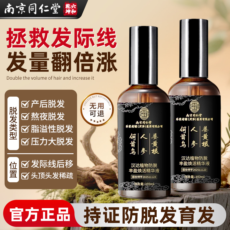 同仁堂防脱育发液洗发水固发增发密发何首乌侧柏叶生发剂快速生长