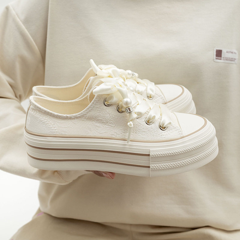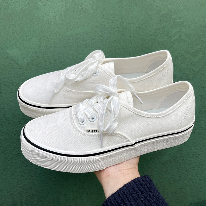 - 白色低帮系带帆布鞋女