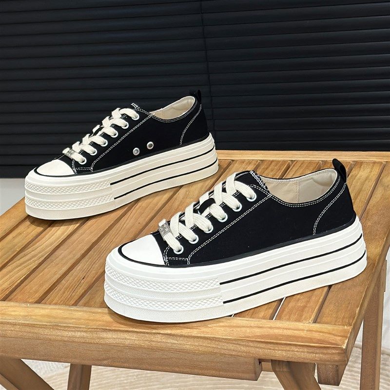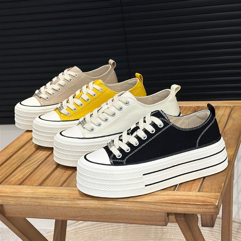 - 帆布鞋女内增高低帮