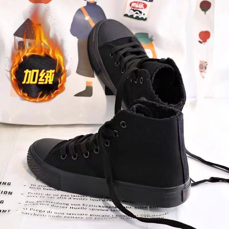 - 秋高帮帆布鞋女