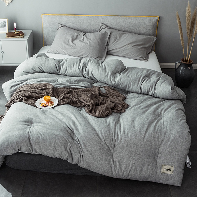 北欧简约风纯色水洗棉春秋被学生纤维被芯单双人冬被加厚冬季被子