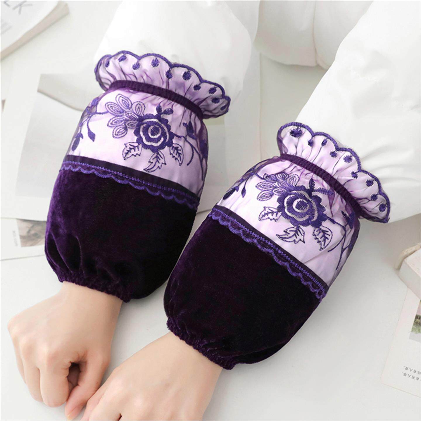 短款秋冬金丝绒蕾丝边洋气袖套女士家务干活上班羽绒服专用护手袖