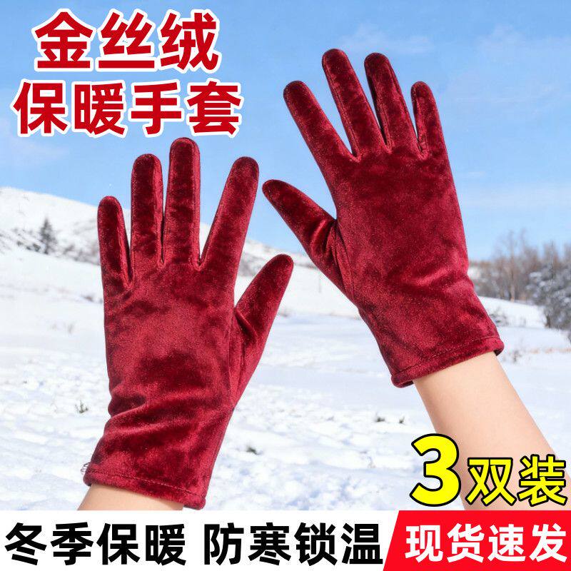 金丝绒秋冬保暖手套加绒防寒户外广场舞骑行开车罗口防风女士手套