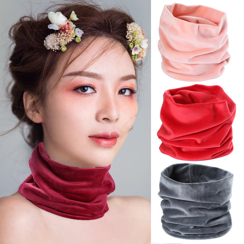 秋冬季薄款丝绒围脖女套头脖套韩版百搭保暖金丝绒护脖颈椎套脖男