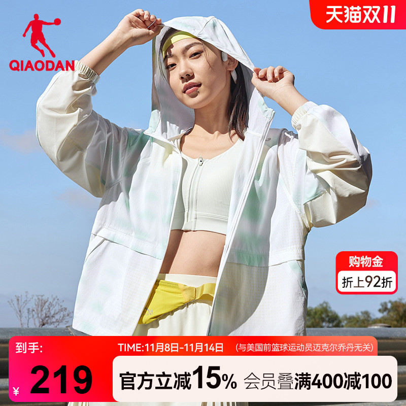 乔丹飞影PB5.0满印梭织薄外套女2025新款运动跑步防晒连帽风衣女