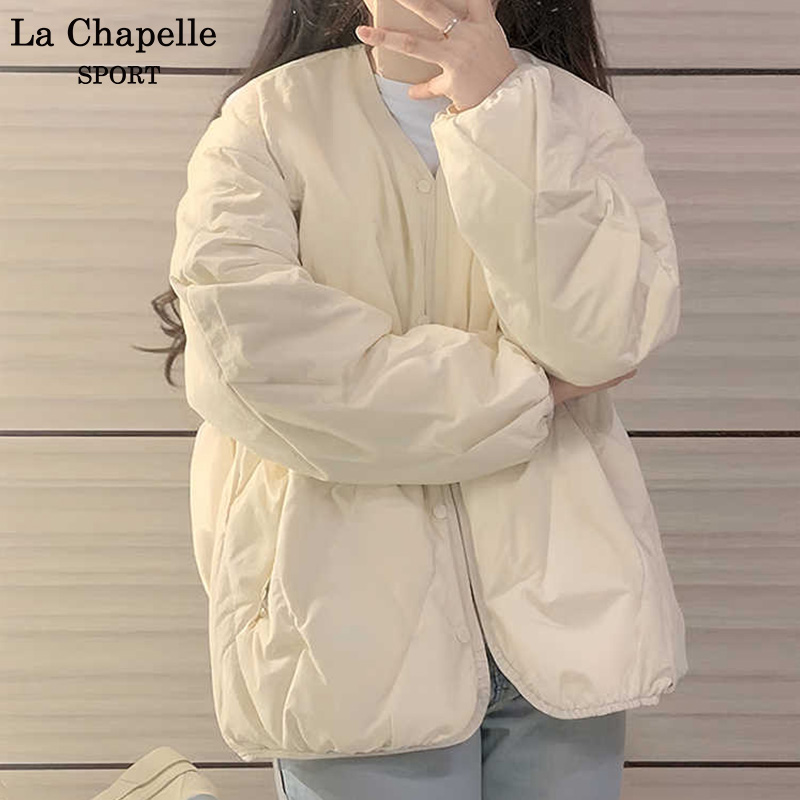 拉夏贝尔轻薄外套女2025新款秋冬季韩系慵懒风开衫菱格夹棉上衣X