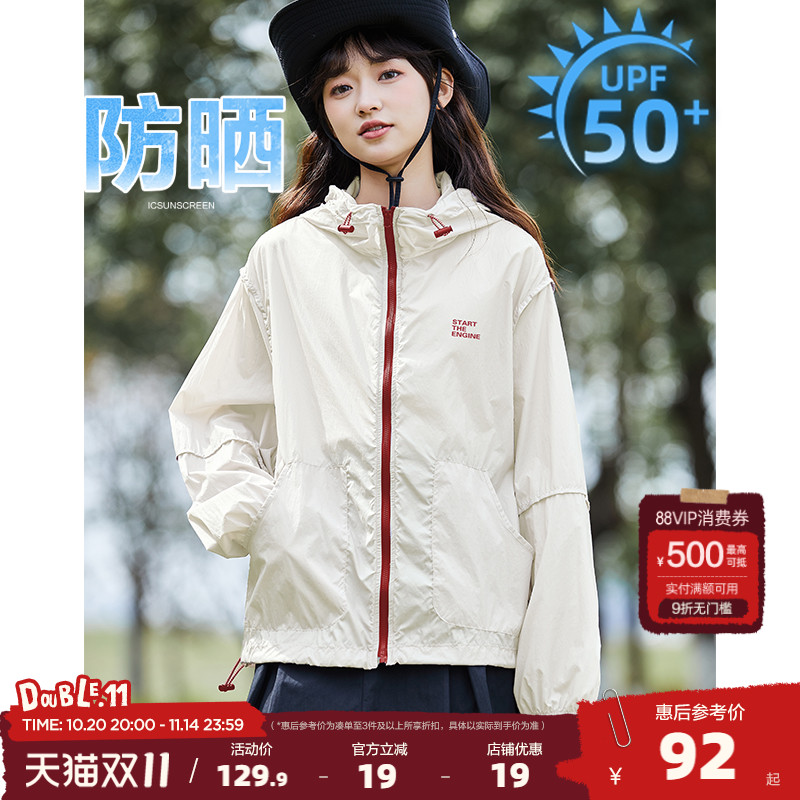 2025春秋新款上衣爆款防晒衣连帽拉链冲锋衣薄外套女休闲宽松百搭