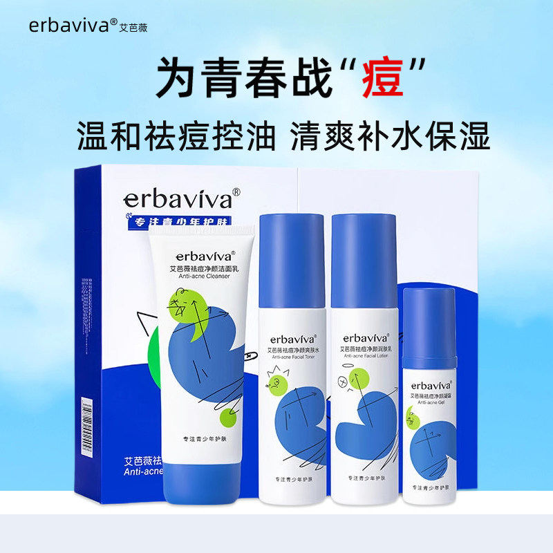 艾芭薇青少年祛痘护肤品学生控油青春期去祛粉刺闭口痘印黑头套装