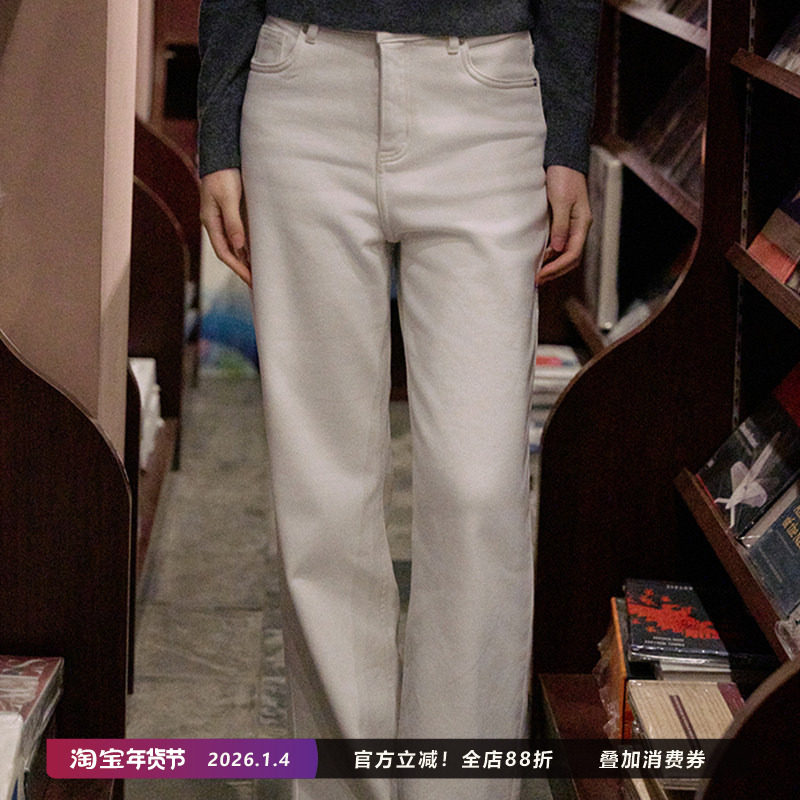Jicouture暖丝绒双色高腰直筒牛仔裤女冬季薄绒高腰阔腿显瘦长裤