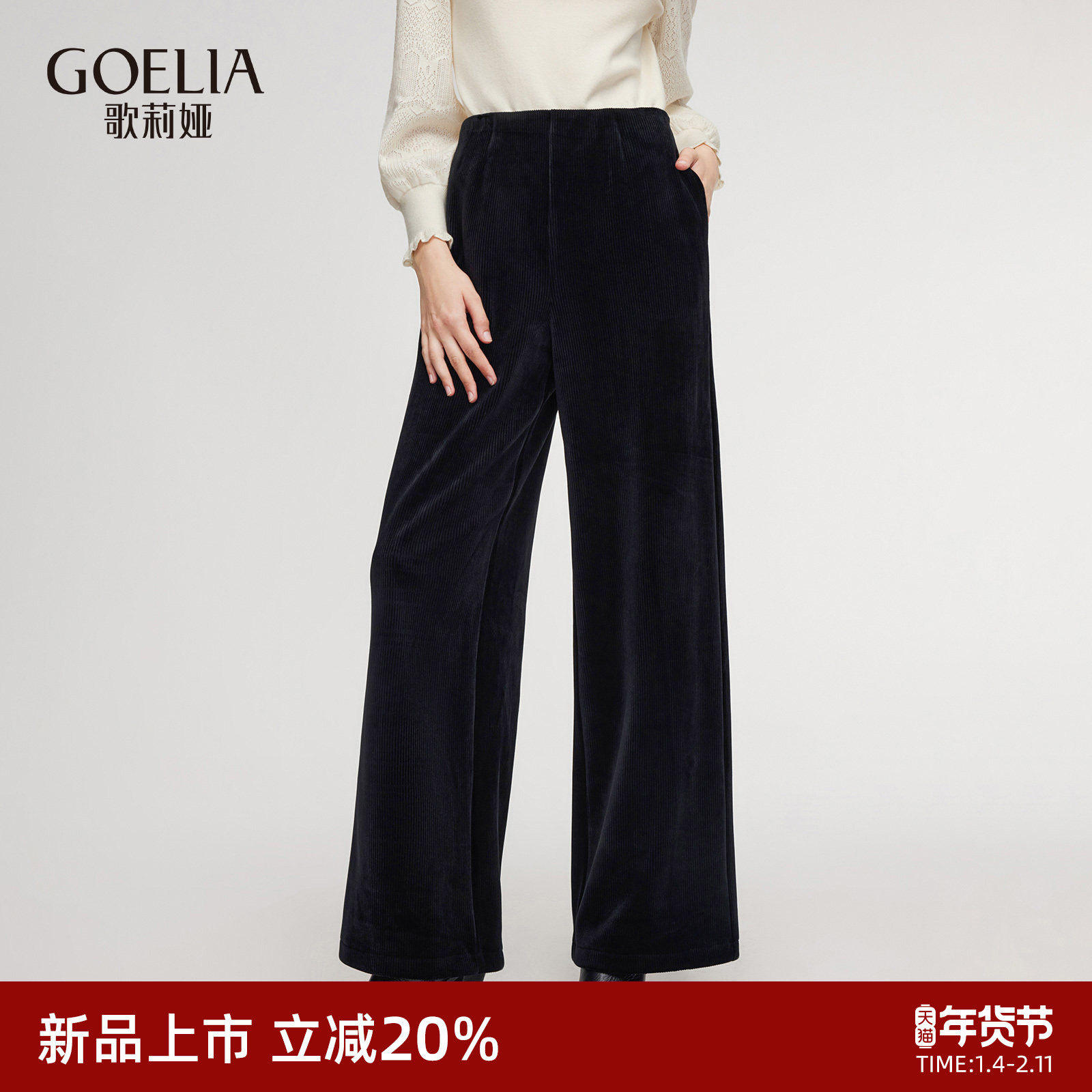 歌莉娅丝绒裤子女秋冬2025新款宽松厚款阔腿裤直筒长裤1ENL1I320