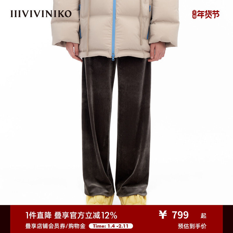 加厚丝绒裤』naivee纳薇秋冬直筒阔腿休闲长裤女加绒老钱风