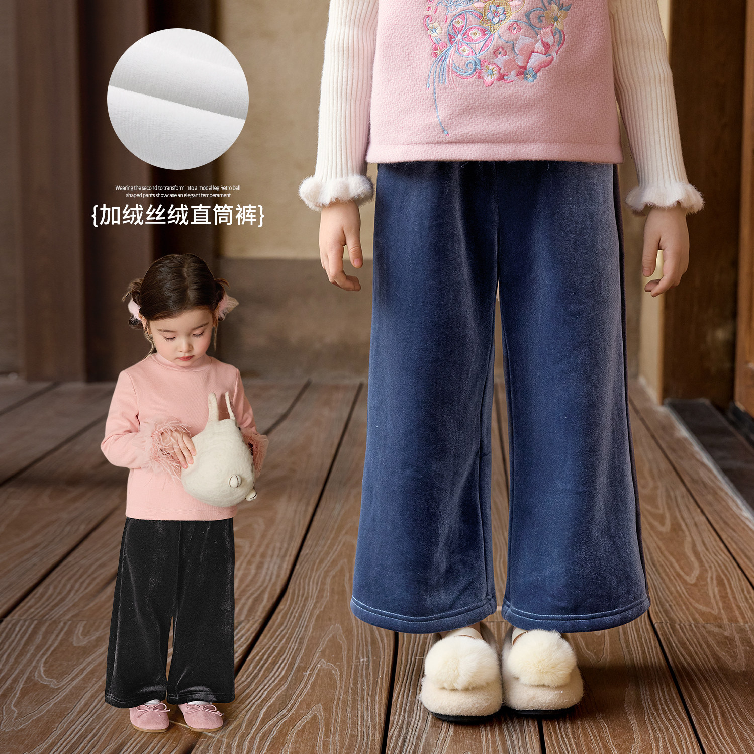 小O宝童装 宝宝阔腿裤女加绒加厚2025冬季新款女童丝绒直筒裤子