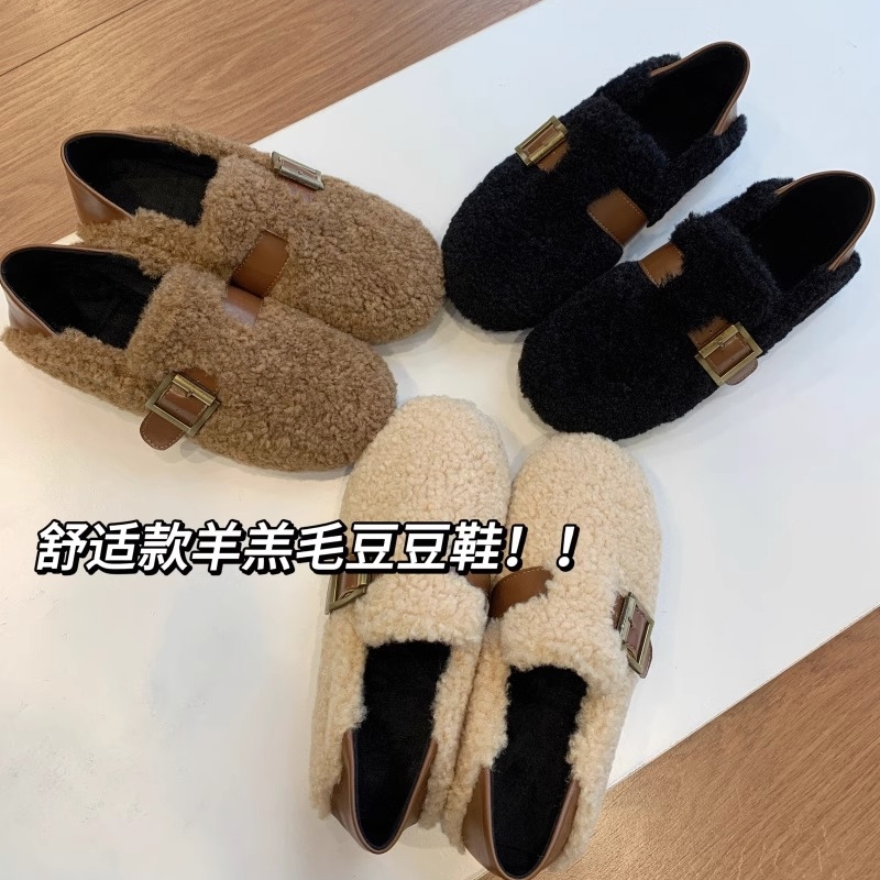 冬季新款泰迪毛加绒豆豆鞋外穿百搭加绒保暖软底防滑毛毛鞋棉鞋女