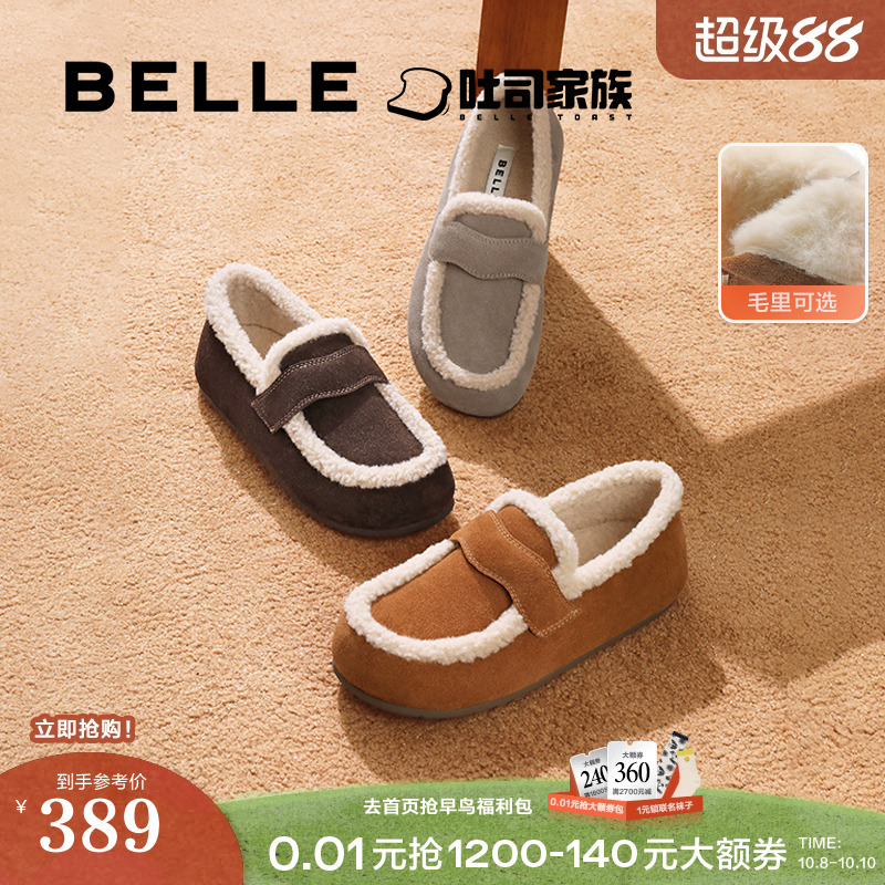 百丽吐司毛毛鞋女冬季新款勃肯雪地靴加绒乐福豆豆棉鞋D2F1DAM5