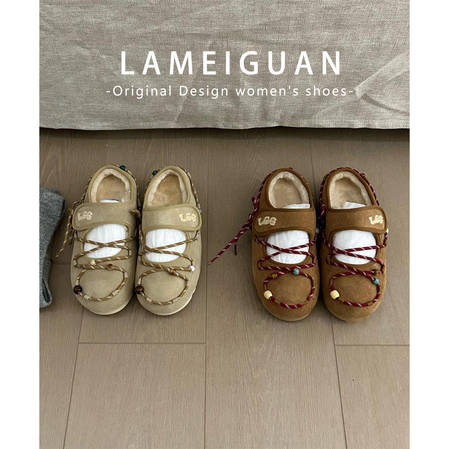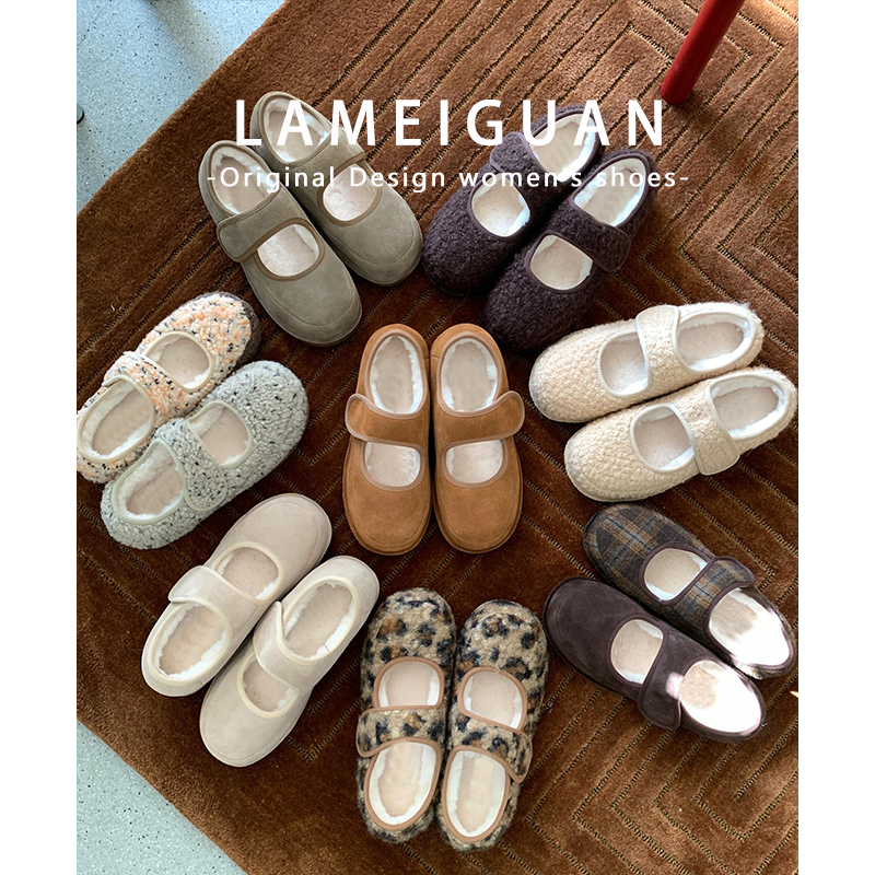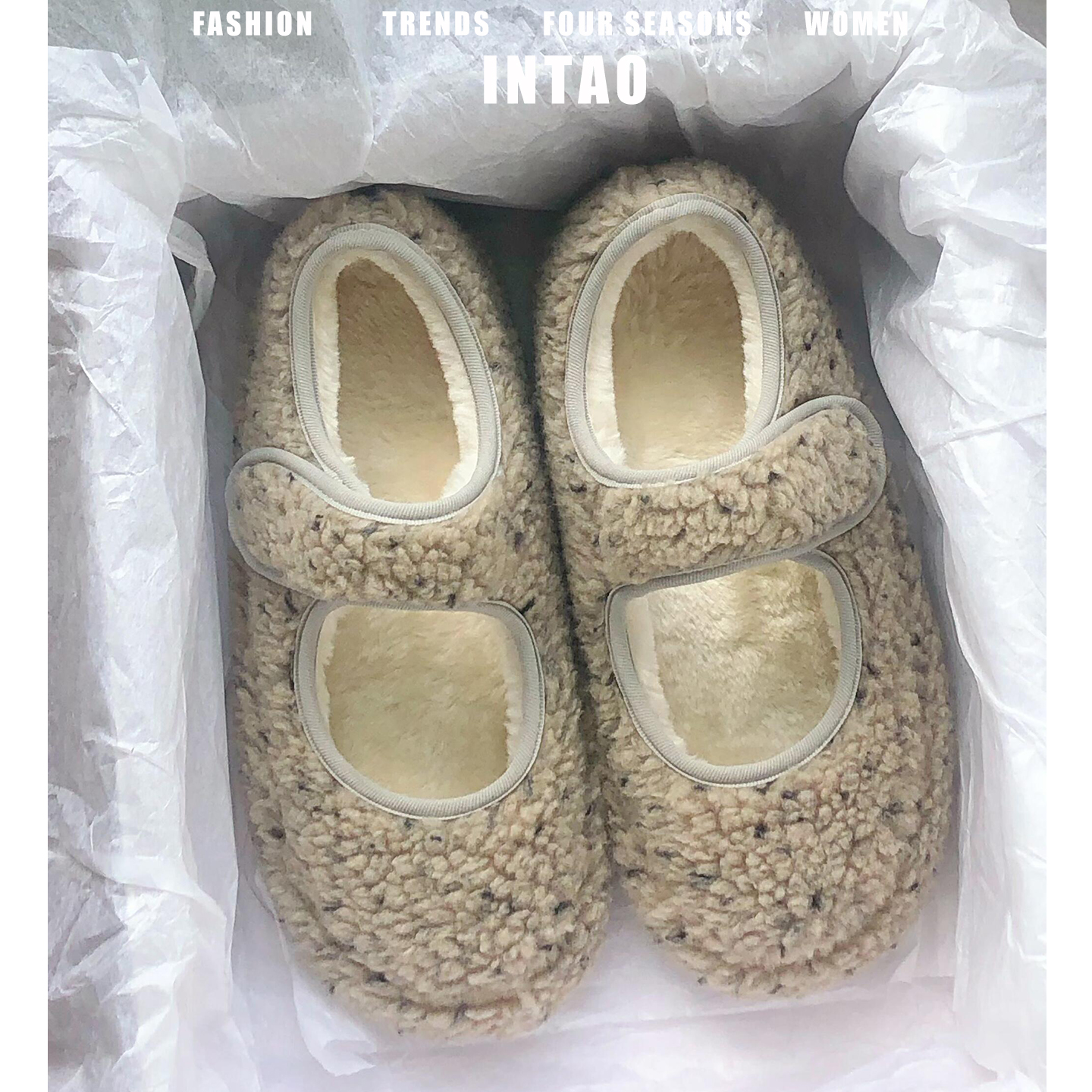 羊羔毛毛魔术贴平底豆豆棉鞋女2025年秋冬新款保暖加绒玛丽珍单鞋