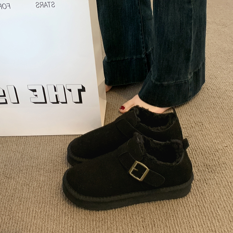 加绒全包复古勃肯鞋女款2025秋冬新款东北棉鞋豆豆鞋毛毛鞋雪地靴