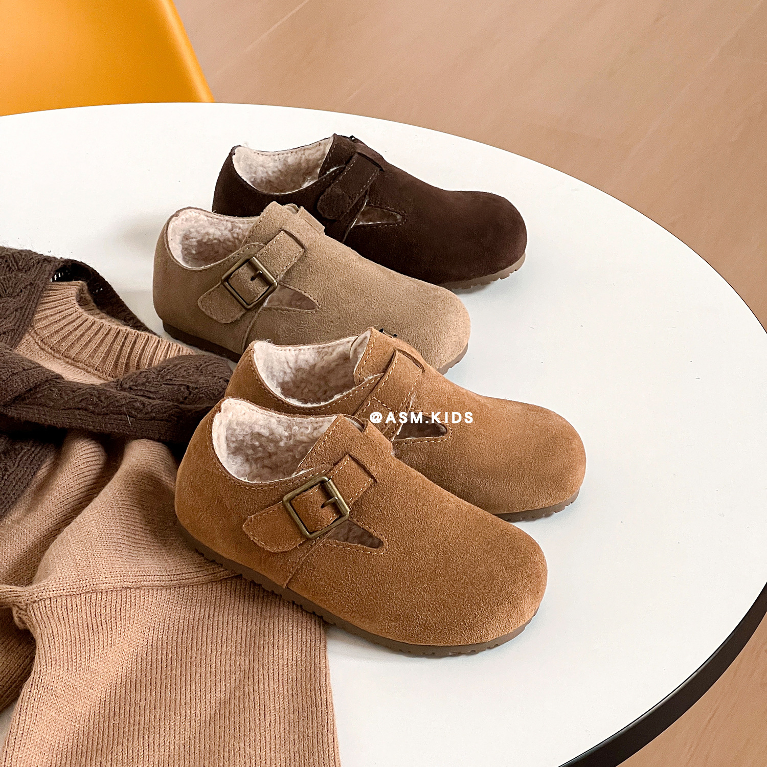 女童棉鞋2025秋冬季新款儿童加绒勃肯鞋毛毛鞋真皮保暖宝宝豆豆鞋