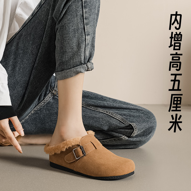 小个子32码33码34码内增高加绒豆豆毛毛鞋女复古勃肯拖鞋冬款