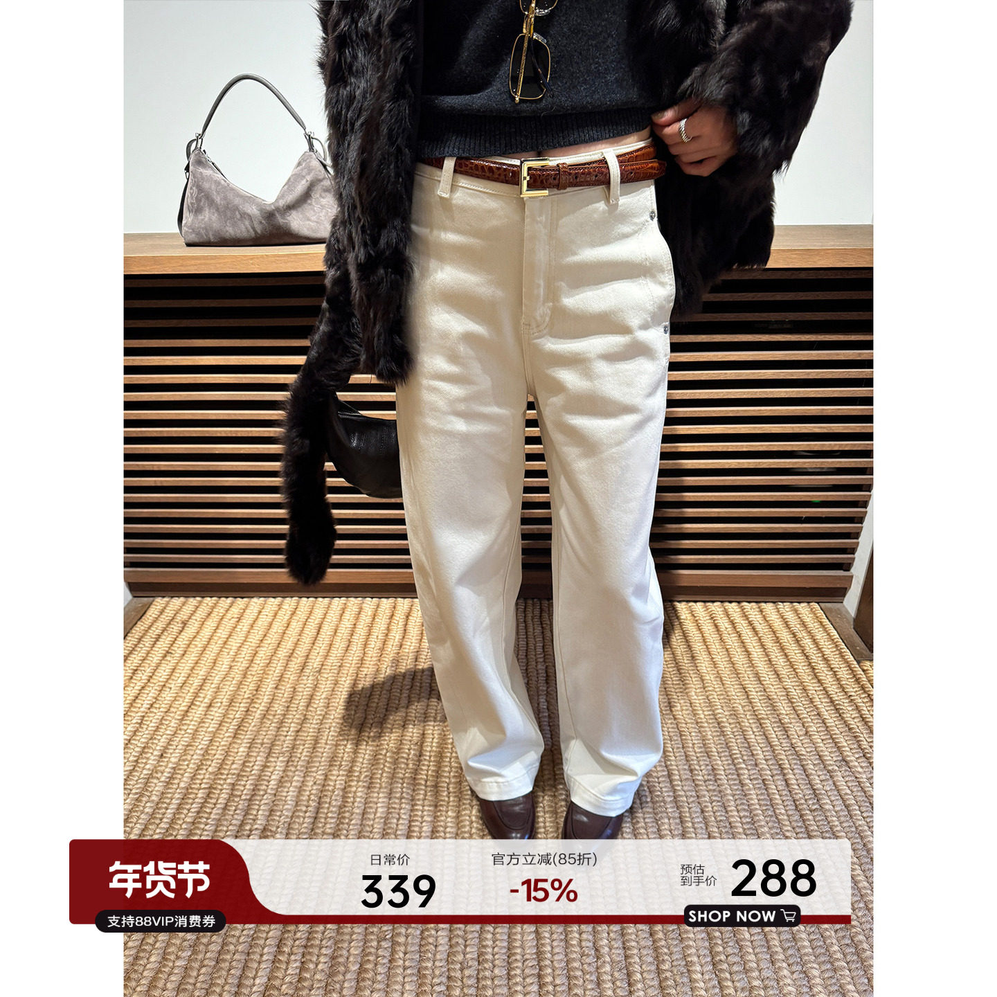 oneup美式白色裤子弯刀裤女秋季长裤香蕉裤黑色镰刀阔腿裤休闲裤