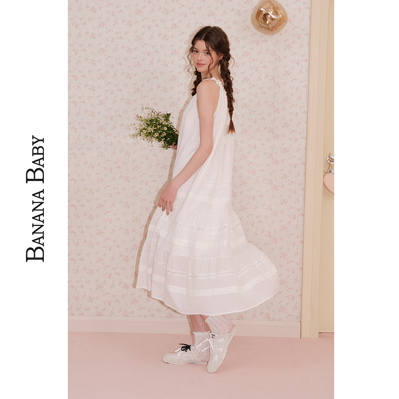 BANANA BABY2025年夏季特惠清仓法式度假风长裙女抽绳宽松连衣裙