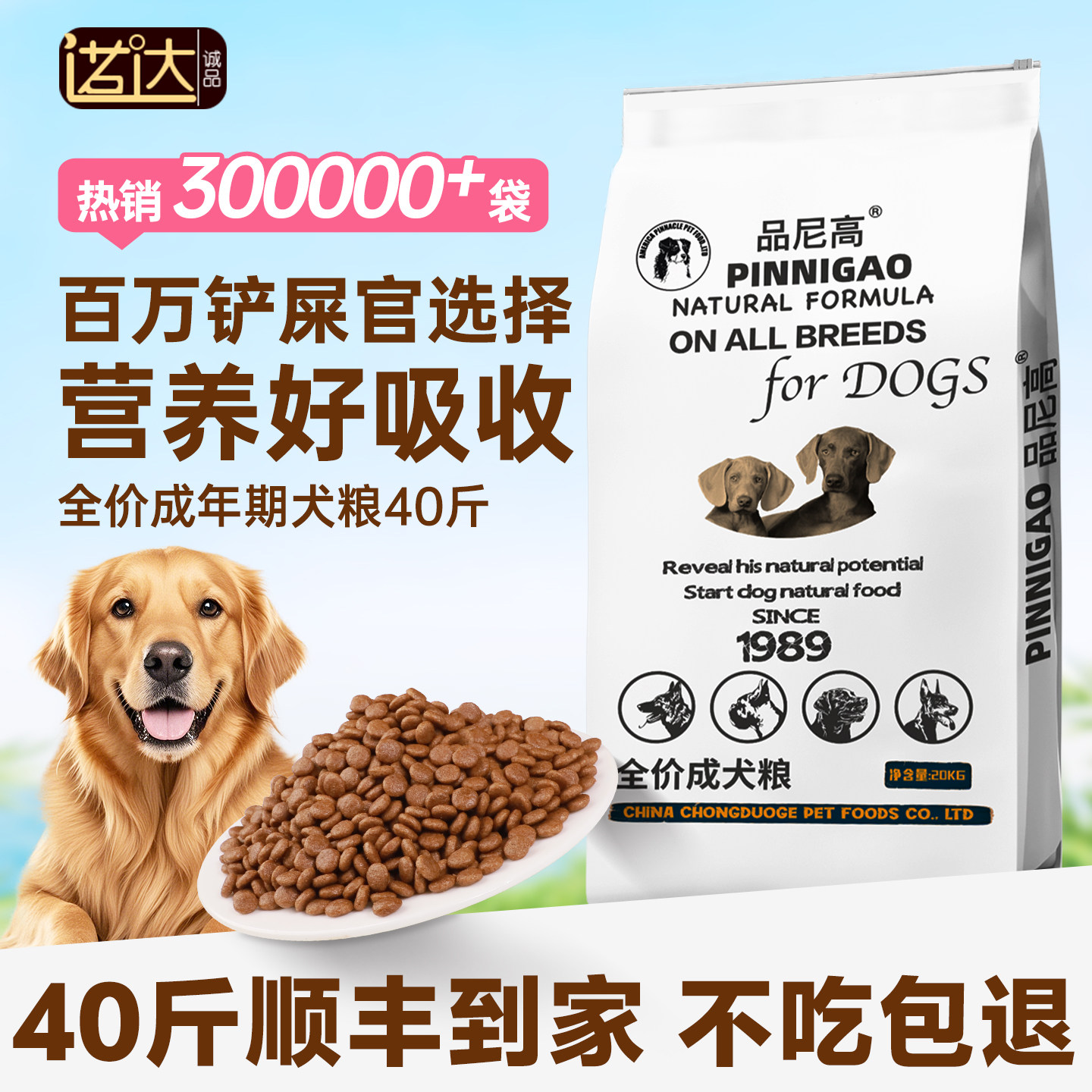 品尼高狗粮20斤装成犬金毛拉布拉多马犬萨摩耶大型犬40通用型10kg