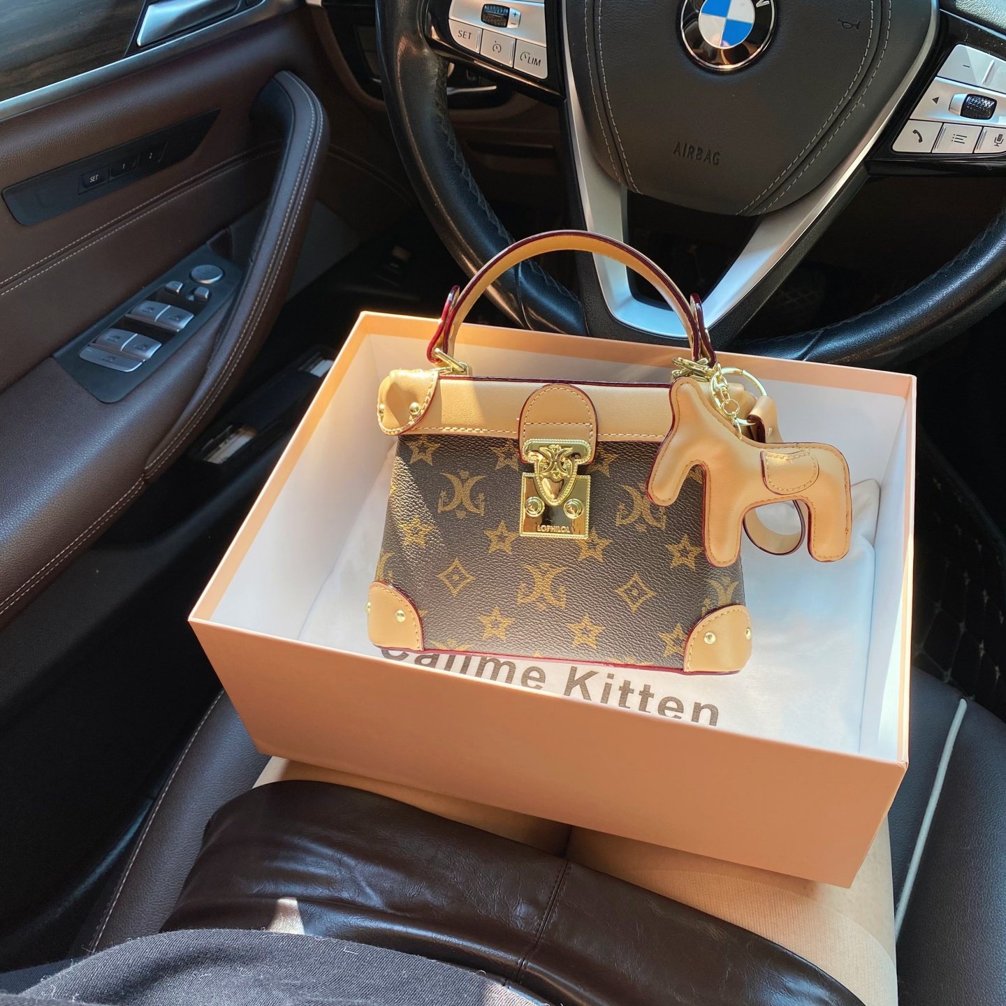 CallmeKitten复古撞色老花化妆盒子包包2026新款高级感斜挎小方包