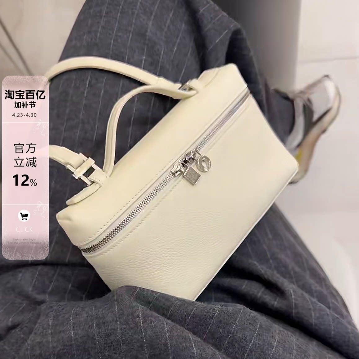 L19真皮手提包鳄鱼纹牛皮化妆包盒子包水桶单肩斜挎包百搭小方包