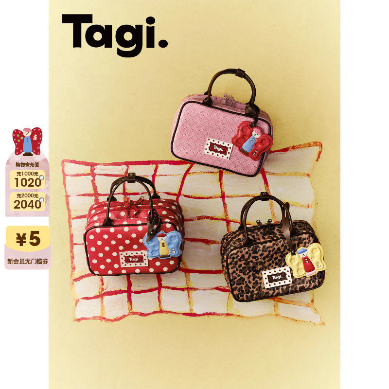 Tagi.《灵感野餐》保龄球收纳化妆包手提包小方包波点豹纹包