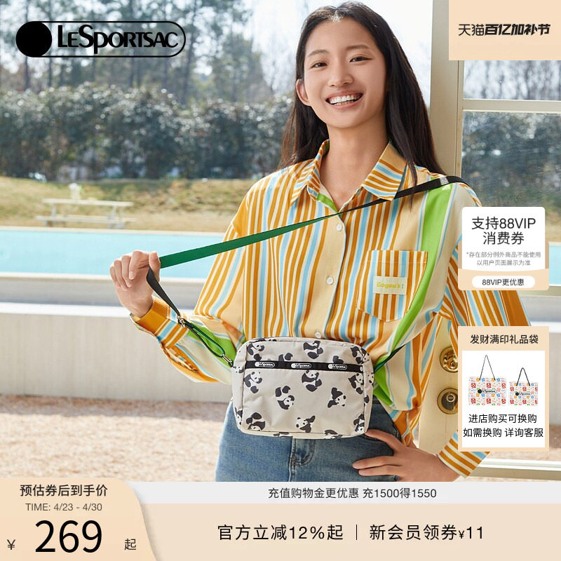 LeSportsac乐播诗新款熊猫系列可爱小方包化妆包轻便逛街斜挎包