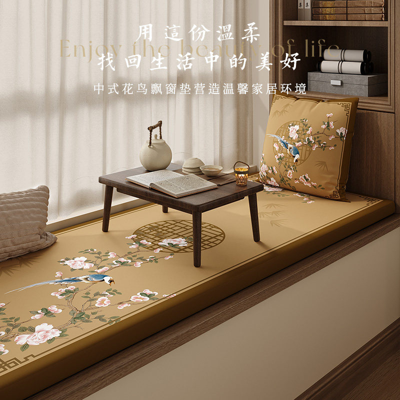 新中式棕色飘窗垫阳台垫子2023新款四季通用珍珠棉乳胶榻榻米定做