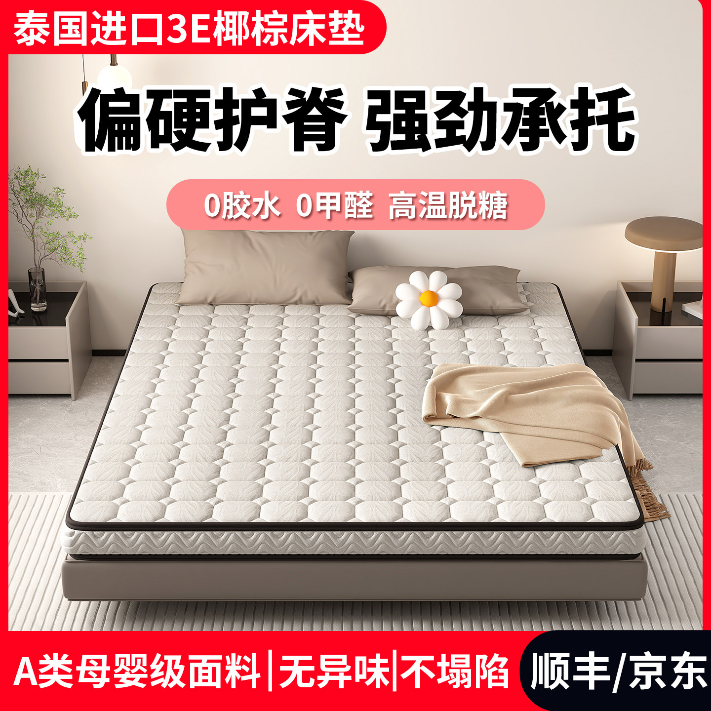 天然椰棕床垫棕榈硬垫护脊护腰0胶水乳胶3E棕垫榻榻米定做折叠