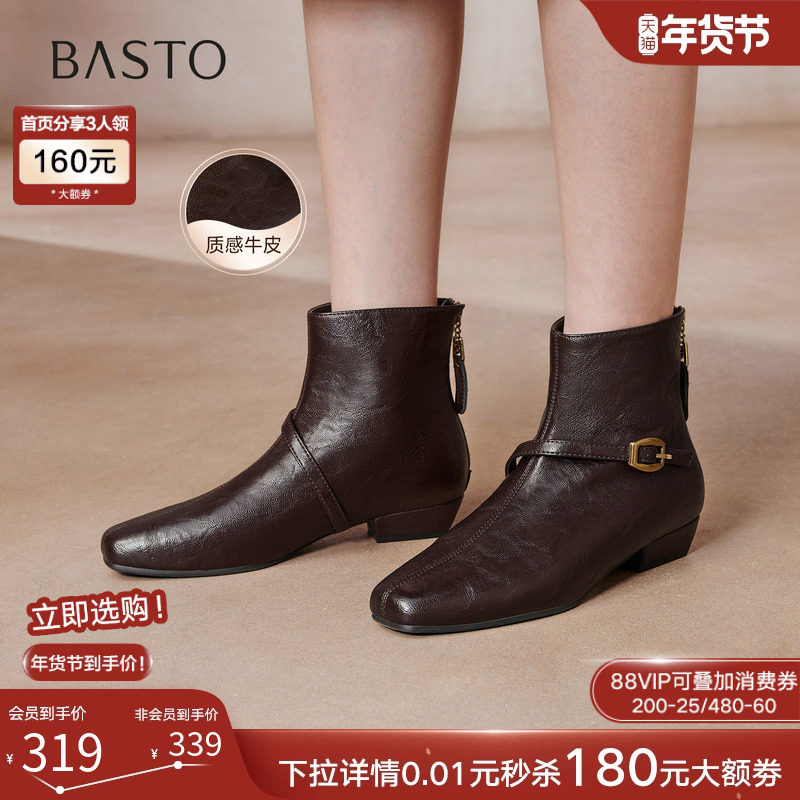 百思图2025冬季商场新款通勤方头复古短靴粗跟女时装靴F3051DD5