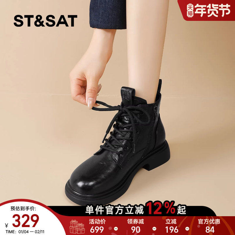 星期六粗跟加绒小短靴女2025新款冬季保暖英伦风复古切尔西马丁靴
