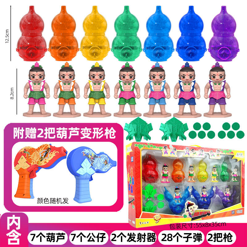 正版葫芦娃玩具儿童公仔全套变形七个金刚爆射葫芦宝兄弟套装男孩